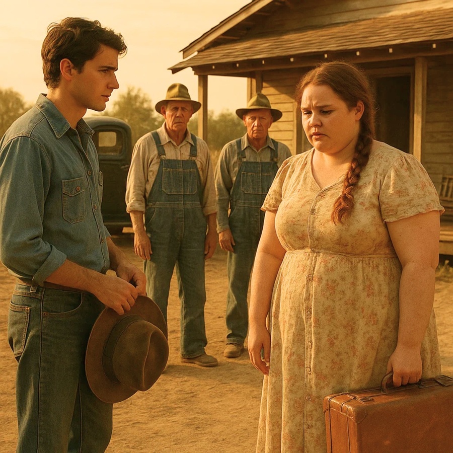 El polvo se arremolinaba alrededor de las desgastadas ruedas de la vieja camioneta Chevrolet al detenerse en la modesta casa de campo bajo el sol del atardecer. Margaret, de 24 años, iba en el asiento del copiloto, con las manos temblorosas aferradas a su destartalada maleta de cuero. Su larga melena rubia estaba trenzada con sencillez, y su vestido de flores, aunque limpio y cuidadosamente remendado, mostraba señales de años de uso.